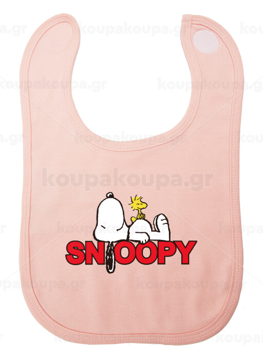Snoopy sleep, Σαλιάρα με Σκρατς ΡΟΖ 100% Organic Cotton (0-18 months)