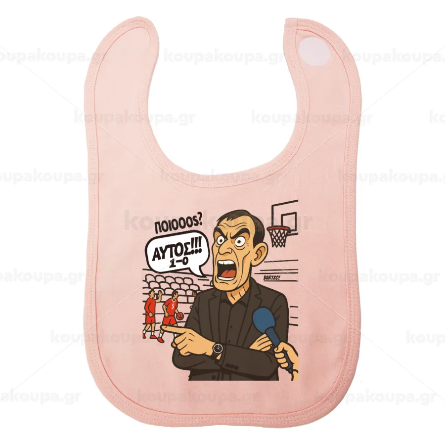 Μπαρτζό, Ποιος? Αυτός!!! 1-0, Σαλιάρα με Σκρατς ΡΟΖ 100% Organic Cotton (0-18 months)