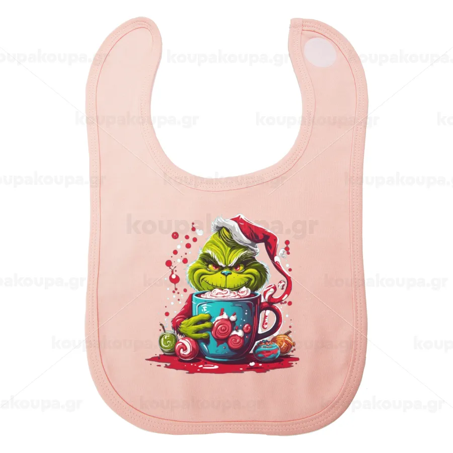 Giggling Grinchy Galore, Σαλιάρα με Σκρατς ΡΟΖ 100% Organic Cotton (0-18 months)
