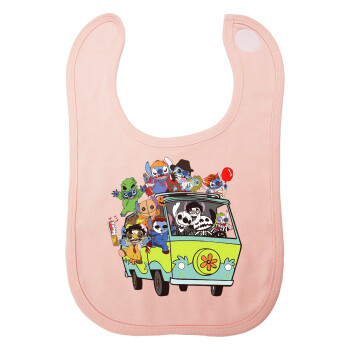 Stitch Halloween scooby car, Σαλιάρα με Σκρατς ΡΟΖ 100% Organic Cotton (0-18 months)