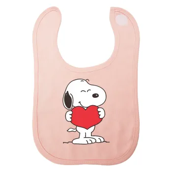 Snoopy takemy heart, Σαλιάρα με Σκρατς ΡΟΖ 100% Organic Cotton (0-18 months)