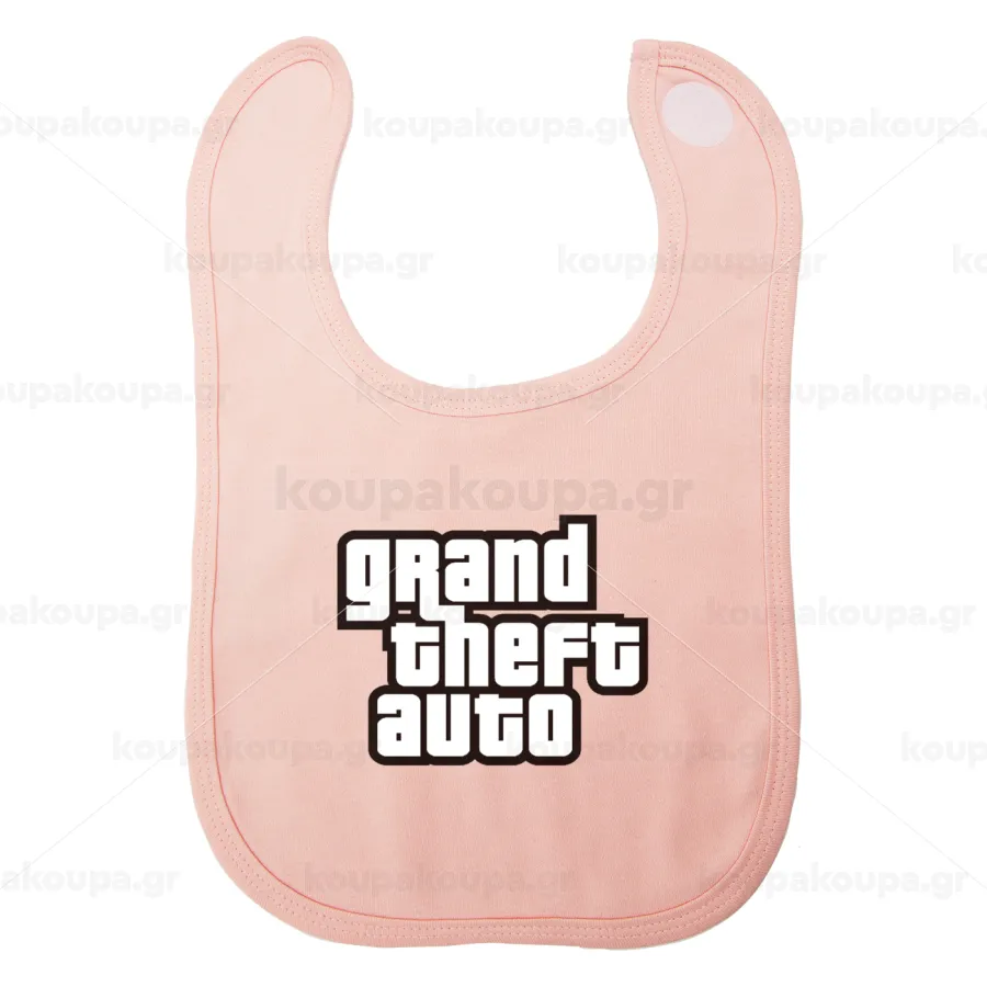 GTA (grand theft auto), Σαλιάρα με Σκρατς ΡΟΖ 100% Organic Cotton (0-18 months)