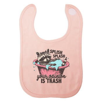 Splish splash your opinion is trash, Σαλιάρα με Σκρατς ΡΟΖ 100% Organic Cotton (0-18 months)
