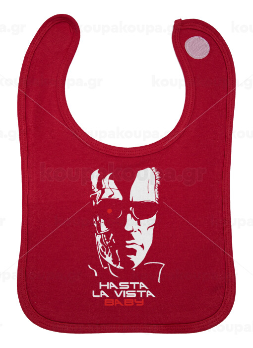Terminator Hasta La Vista, Σαλιάρα με Σκρατς Κόκκινη 100% Organic Cotton (0-18 months)