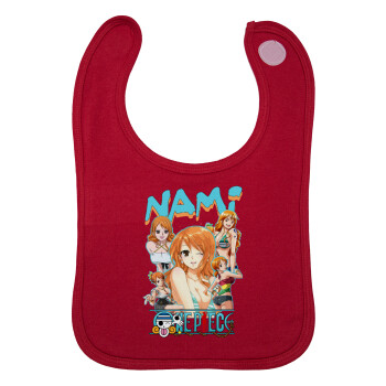 Nami One Piece, Σαλιάρα με Σκρατς Κόκκινη 100% Organic Cotton (0-18 months)