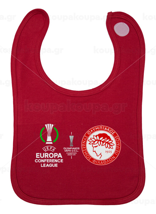Ολυμπιακός νικητής UEFA Europa Conference League Champion 2023/24, Σαλιάρα με Σκρατς Κόκκινη 100% Organic Cotton (0-18 months)