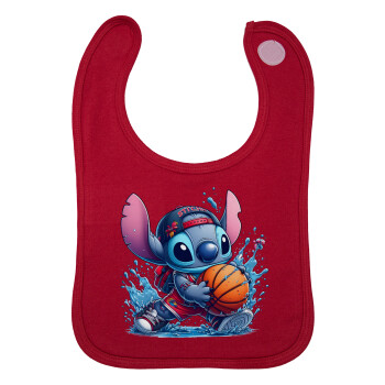 Stitch Basketball, Σαλιάρα με Σκρατς Κόκκινη 100% Organic Cotton (0-18 months)