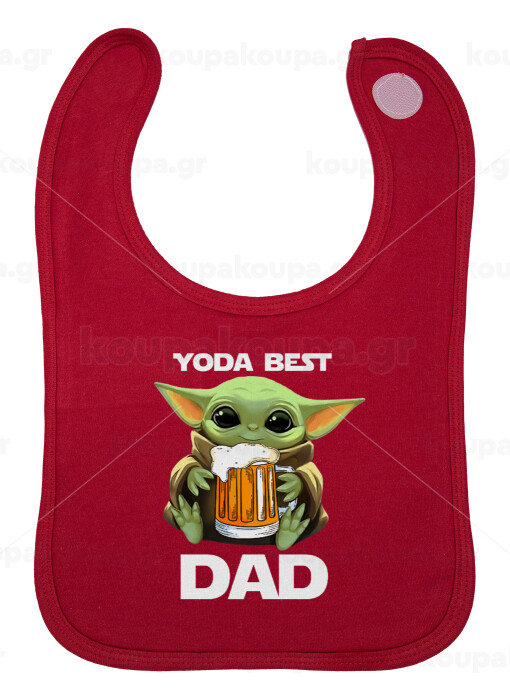 Yoda Best Dad, Σαλιάρα με Σκρατς Κόκκινη 100% Organic Cotton (0-18 months)