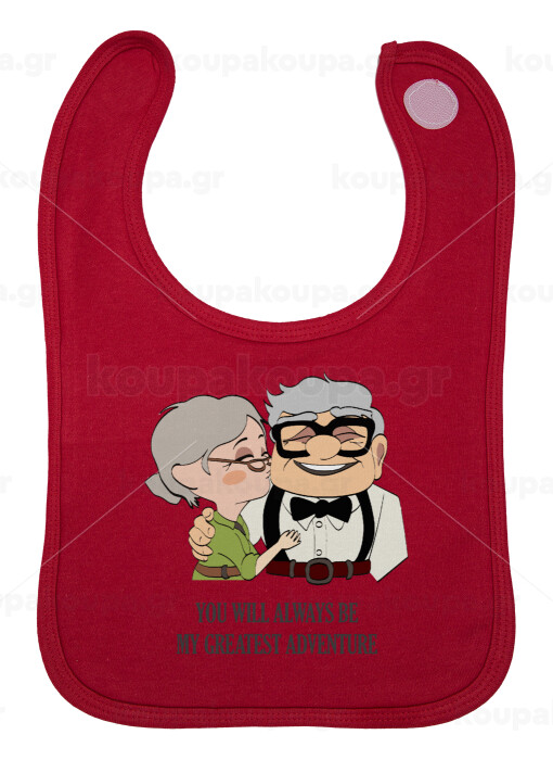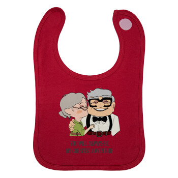 UP, YOU WILL ALWAYS BE MY GREATEST ADVENTURE, Σαλιάρα με Σκρατς Κόκκινη 100% Organic Cotton (0-18 months)