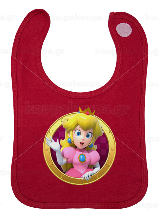 Princess Peach Toadstool, Σαλιάρα με Σκρατς Κόκκινη 100% Organic Cotton (0-18 months)