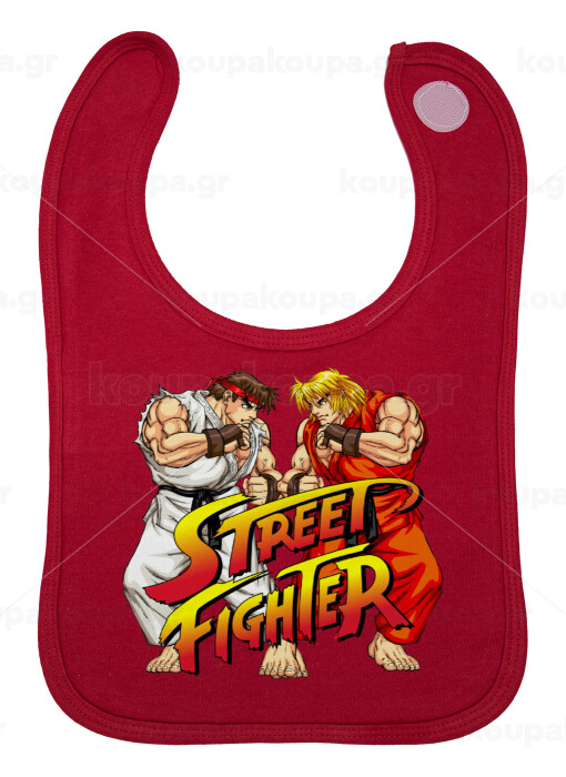 Street fighter, Σαλιάρα με Σκρατς Κόκκινη 100% Organic Cotton (0-18 months)