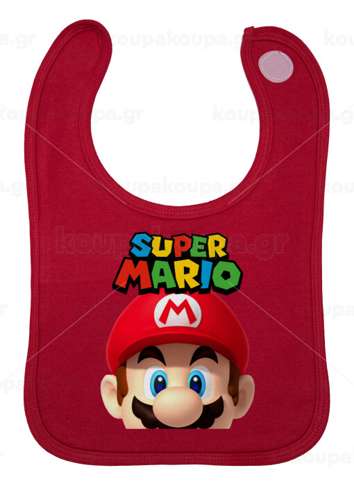 Super mario, Σαλιάρα με Σκρατς Κόκκινη 100% Organic Cotton (0-18 months)