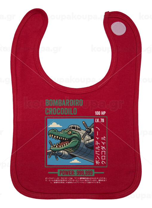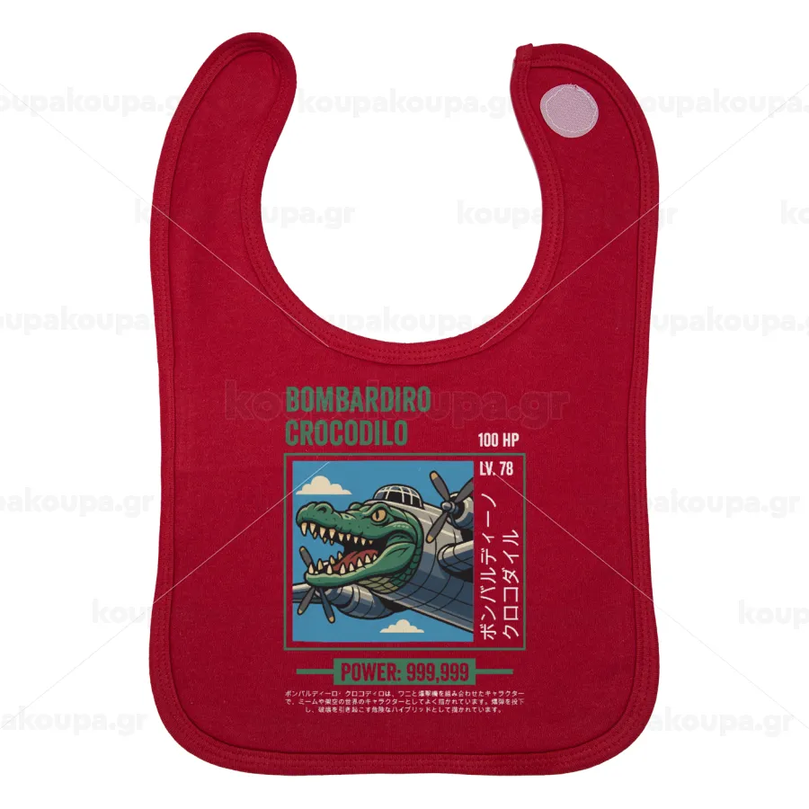 Bombardiro Crocodilo, Σαλιάρα με Σκρατς Κόκκινη 100% Organic Cotton (0-18 months)