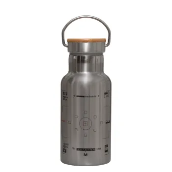 Camera viewfinder, Μεταλλικό παγούρι θερμός (Stainless steel) Ασημένιο με ξύλινο καπακι (bamboo), διπλού τοιχώματος, 350ml