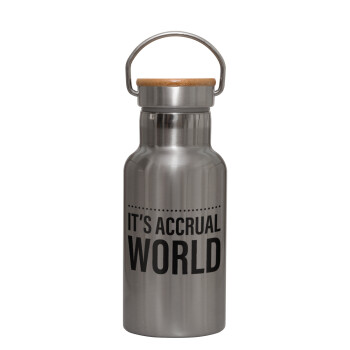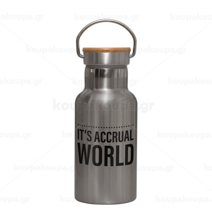 It's an accrual world, Μεταλλικό παγούρι θερμός (Stainless steel) Ασημένιο με ξύλινο καπακι (bamboo), διπλού τοιχώματος, 350ml
