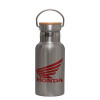 Honda, Μεταλλικό παγούρι θερμός (Stainless steel) Ασημένιο με ξύλινο καπακι (bamboo), διπλού τοιχώματος, 350ml