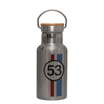 VW Herbie 53, Μεταλλικό παγούρι θερμός (Stainless steel) Ασημένιο με ξύλινο καπακι (bamboo), διπλού τοιχώματος, 350ml