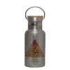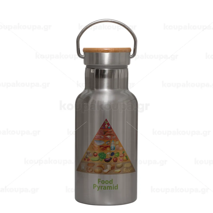 Διατροφική πυραμίδα, Μεταλλικό παγούρι θερμός (Stainless steel) Ασημένιο με ξύλινο καπακι (bamboo), διπλού τοιχώματος, 350ml
