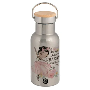 Dance Like everyone's watching, Μεταλλικό παγούρι θερμός (Stainless steel) Ασημένιο με ξύλινο καπακι (bamboo), διπλού τοιχώματος, 350ml