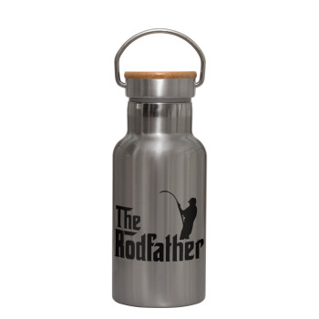 The rodfather, Μεταλλικό παγούρι θερμός (Stainless steel) Ασημένιο με ξύλινο καπακι (bamboo), διπλού τοιχώματος, 350ml