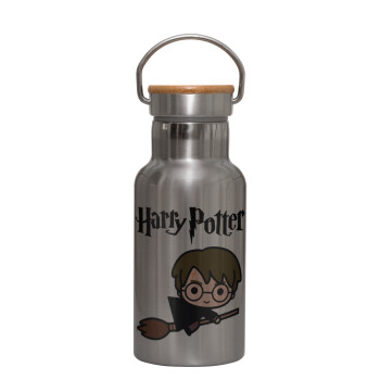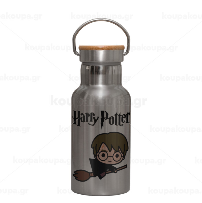 Harry potter kid, Μεταλλικό παγούρι θερμός (Stainless steel) Ασημένιο με ξύλινο καπακι (bamboo), διπλού τοιχώματος, 350ml