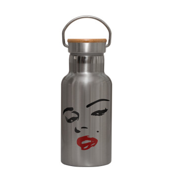 Marilyn Monroe, Μεταλλικό παγούρι θερμός (Stainless steel) Ασημένιο με ξύλινο καπακι (bamboo), διπλού τοιχώματος, 350ml