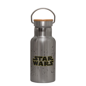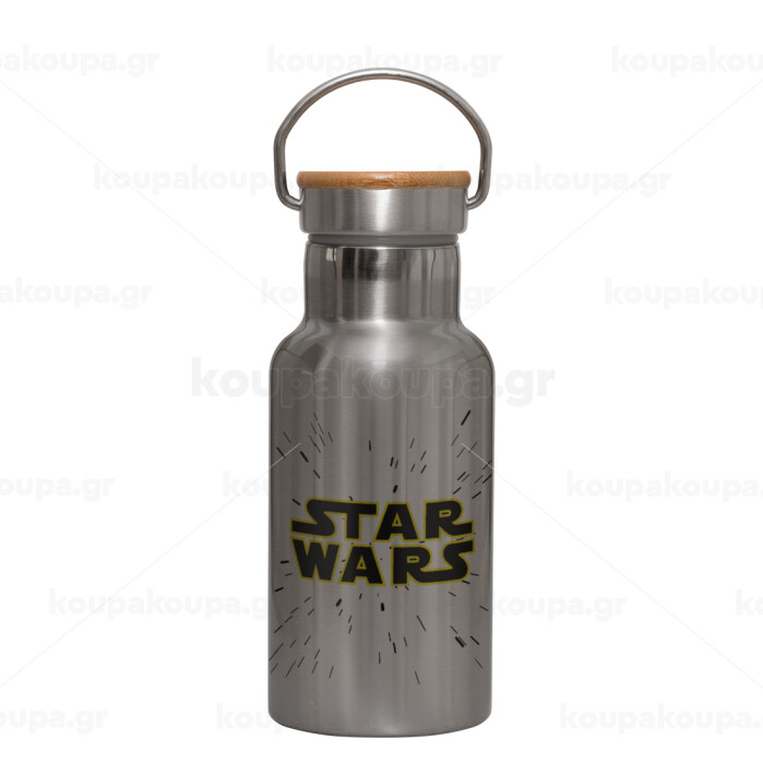 Star Wars, Μεταλλικό παγούρι θερμός (Stainless steel) Ασημένιο με ξύλινο καπακι (bamboo), διπλού τοιχώματος, 350ml