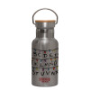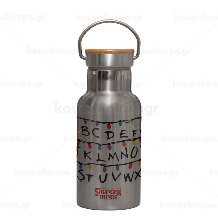 Stranger Things ABC, Μεταλλικό παγούρι θερμός (Stainless steel) Ασημένιο με ξύλινο καπακι (bamboo), διπλού τοιχώματος, 350ml