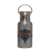 Superman hands, Μεταλλικό παγούρι θερμός (Stainless steel) Ασημένιο με ξύλινο καπακι (bamboo), διπλού τοιχώματος, 350ml