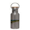 Superman vintage, Μεταλλικό παγούρι θερμός (Stainless steel) Ασημένιο με ξύλινο καπακι (bamboo), διπλού τοιχώματος, 350ml