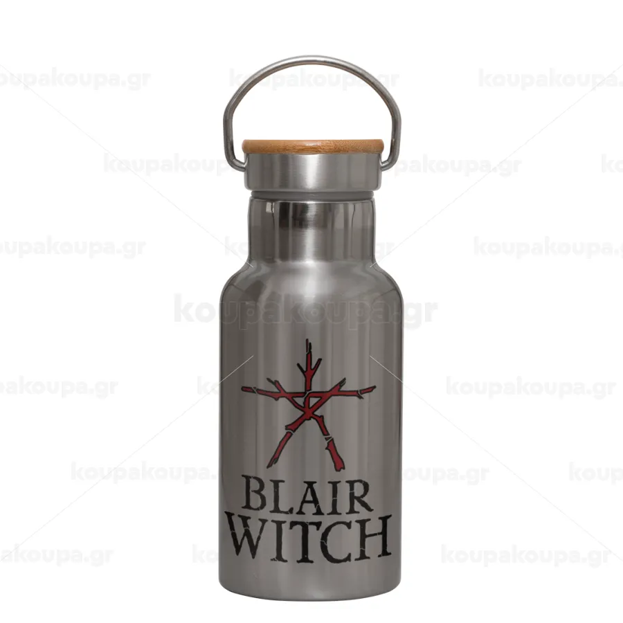 The Blair Witch Project , Μεταλλικό παγούρι θερμός (Stainless steel) Ασημένιο με ξύλινο καπακι (bamboo), διπλού τοιχώματος, 350ml