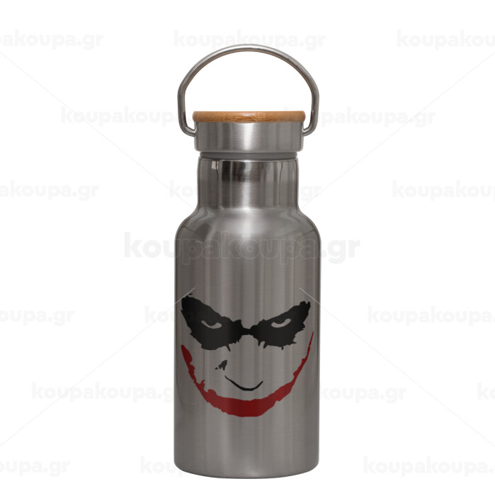The joker smile, Μεταλλικό παγούρι θερμός (Stainless steel) Ασημένιο με ξύλινο καπακι (bamboo), διπλού τοιχώματος, 350ml