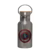 Captain America, Μεταλλικό παγούρι θερμός (Stainless steel) Ασημένιο με ξύλινο καπακι (bamboo), διπλού τοιχώματος, 350ml