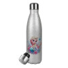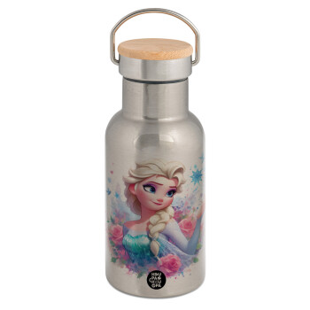 Elsa Princess, Μεταλλικό παγούρι θερμός (Stainless steel) Ασημένιο με ξύλινο καπακι (bamboo), διπλού τοιχώματος, 350ml