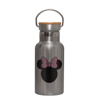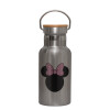 mouse girl, Μεταλλικό παγούρι θερμός (Stainless steel) Ασημένιο με ξύλινο καπακι (bamboo), διπλού τοιχώματος, 350ml