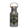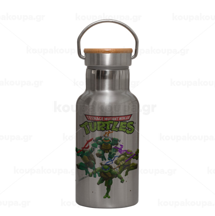 Ninja turtles, Μεταλλικό παγούρι θερμός (Stainless steel) Ασημένιο με ξύλινο καπακι (bamboo), διπλού τοιχώματος, 350ml