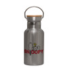 Snoopy sleep, Μεταλλικό παγούρι θερμός (Stainless steel) Ασημένιο με ξύλινο καπακι (bamboo), διπλού τοιχώματος, 350ml