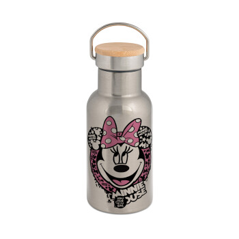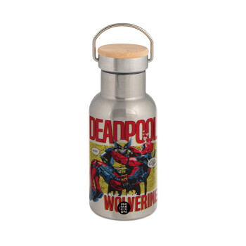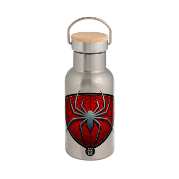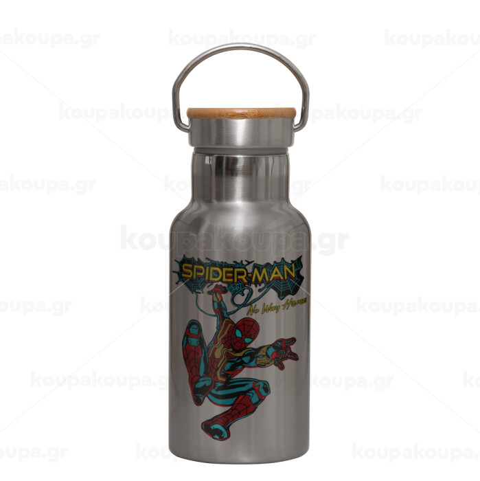 Spiderman no way home, Μεταλλικό παγούρι θερμός (Stainless steel) Ασημένιο με ξύλινο καπακι (bamboo), διπλού τοιχώματος, 350ml