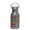 Elephants And Donkeys Grow Big Ears, Μεταλλικό παγούρι θερμός (Stainless steel) Ασημένιο με ξύλινο καπακι (bamboo), διπλού τοιχώματος, 350ml