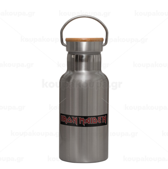 Iron maiden, Μεταλλικό παγούρι θερμός (Stainless steel) Ασημένιο με ξύλινο καπακι (bamboo), διπλού τοιχώματος, 350ml