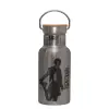 Maneskin Damiano David, Μεταλλικό παγούρι θερμός (Stainless steel) Ασημένιο με ξύλινο καπακι (bamboo), διπλού τοιχώματος, 350ml