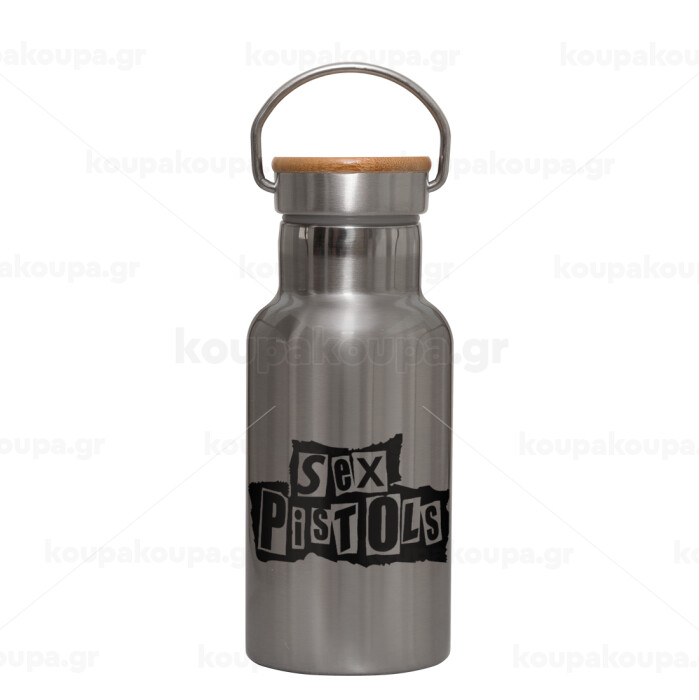 Sex Pistols, Μεταλλικό παγούρι θερμός (Stainless steel) Ασημένιο με ξύλινο καπακι (bamboo), διπλού τοιχώματος, 350ml