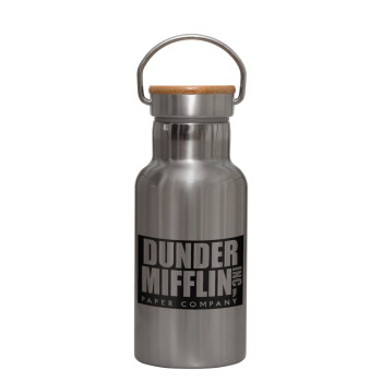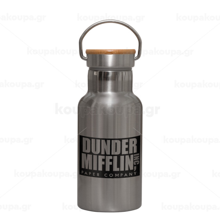 Dunder Mifflin, Inc Paper Company, Μεταλλικό παγούρι θερμός (Stainless steel) Ασημένιο με ξύλινο καπακι (bamboo), διπλού τοιχώματος, 350ml