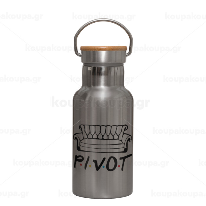 Friends Pivot, Μεταλλικό παγούρι θερμός (Stainless steel) Ασημένιο με ξύλινο καπακι (bamboo), διπλού τοιχώματος, 350ml