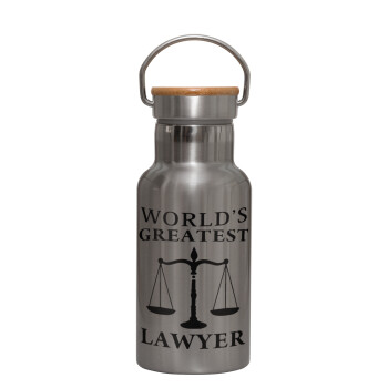 World's greatest Lawyer, Μεταλλικό παγούρι θερμός (Stainless steel) Ασημένιο με ξύλινο καπακι (bamboo), διπλού τοιχώματος, 350ml