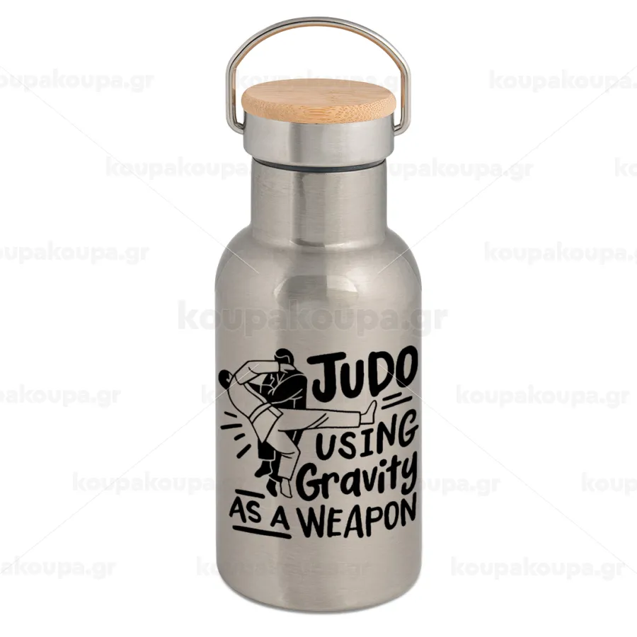Judo using gravity as a weapon, Μεταλλικό παγούρι θερμός (Stainless steel) Ασημένιο με ξύλινο καπακι (bamboo), διπλού τοιχώματος, 350ml