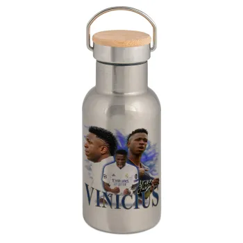 Vinicius Junior, Μεταλλικό παγούρι θερμός (Stainless steel) Ασημένιο με ξύλινο καπακι (bamboo), διπλού τοιχώματος, 350ml
