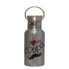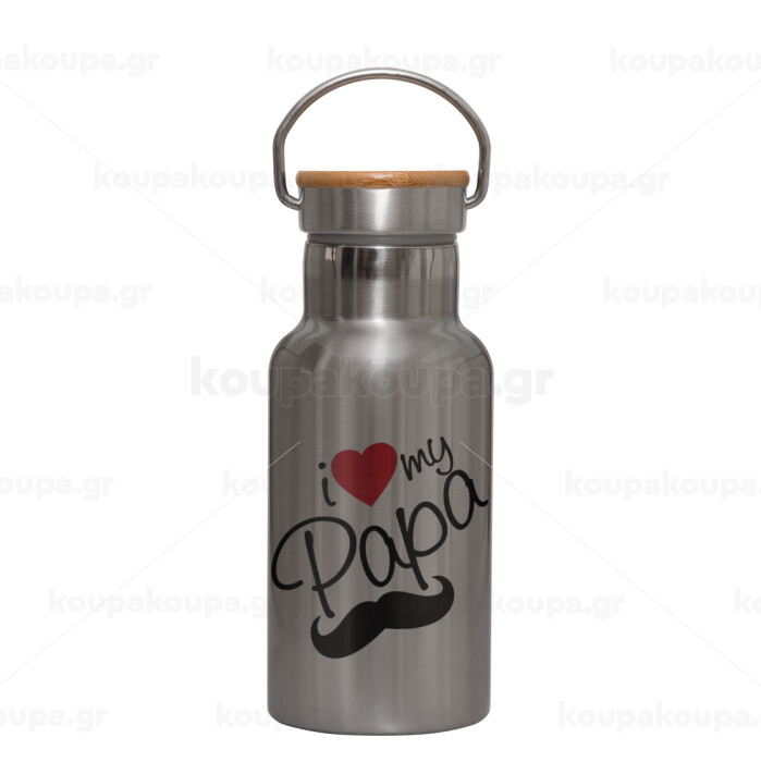 I Love my papa, Μεταλλικό παγούρι θερμός (Stainless steel) Ασημένιο με ξύλινο καπακι (bamboo), διπλού τοιχώματος, 350ml