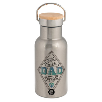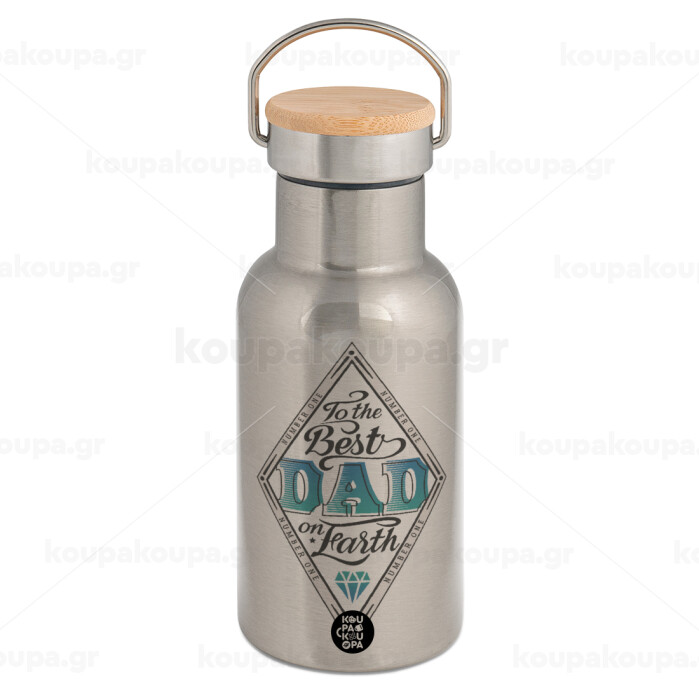 To the best DAD on earth, Μεταλλικό παγούρι θερμός (Stainless steel) Ασημένιο με ξύλινο καπακι (bamboo), διπλού τοιχώματος, 350ml