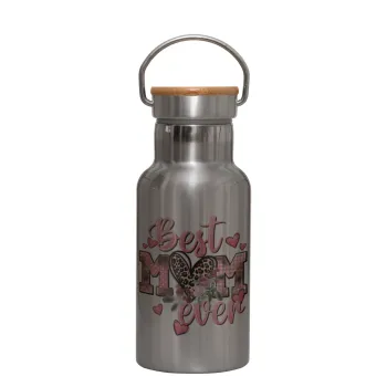 Best mom ever Mother's Day, Μεταλλικό παγούρι θερμός (Stainless steel) Ασημένιο με ξύλινο καπακι (bamboo), διπλού τοιχώματος, 350ml